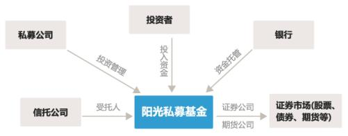 目前市場上大部分的陽光私募基金其實是信托產(chǎn)品,即通過信托公司發(fā)行的產(chǎn)品,通過信托合同規(guī)定各方的權(quán)利與義務(wù)。陽光私募基金共有四方參與:陽光私募基金公司、信托公司、證券公司和銀行,其中陽光私募基金公司負(fù)責(zé)證券市場投資;信托公司是產(chǎn)品發(fā)行的法律主體,提供產(chǎn)品運作的平臺,并承擔(dān)部分監(jiān)管職責(zé);銀行作為資金托管人,保障投資者資金安全;證券公司作為證券托管方,保障證券的安全性。另外,除了通過信托平臺發(fā)行,還有通過有限合伙企業(yè)、券商資管通道、公募基金一對一專戶發(fā)行的陽光私募基金。