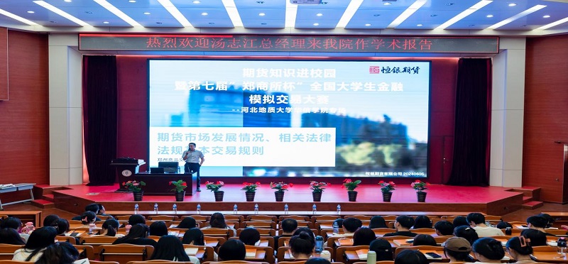 2024年6月5日,恒銀期貨總經理湯志江率領團隊在河北地質大學華信學院報告廳開展了一場別開生面的“期貨知識進校園”活動,并同步舉辦了第七屆“鄭商所杯”全國大學生金融模擬交易大賽——河北地質大學華信學院專場宣講會。為了預熱本次活動,校方在公眾號發(fā)布了活動通告,受到了各系學生的熱烈追捧,參會人數(shù)超過300人。此次活動旨在加強期貨知識在校園的普及與推廣,提升大學生對金融市場的認識與理解,同時也為廣大師生提供了“鄭商所杯”這樣一個展示才華、交流學習的平臺。